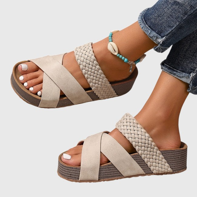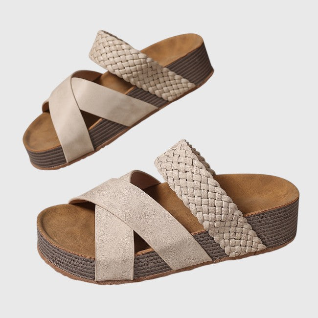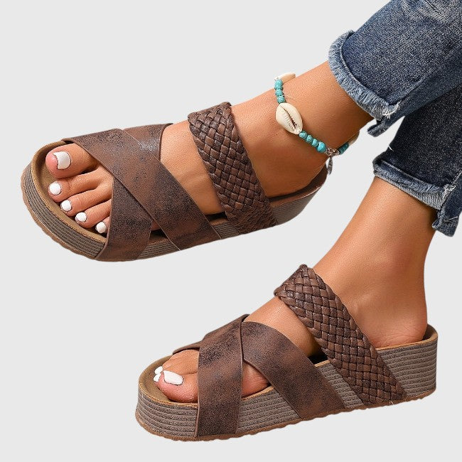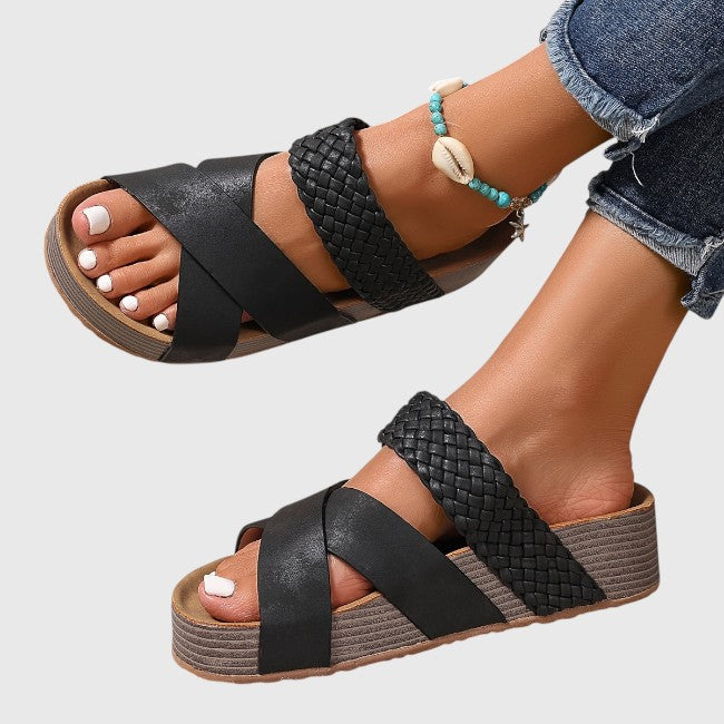 • עיצוב אלגנטי: רצועות קלועות ועקב פלטפורמה אופנתי המשלבים מראה טרנדי עם נוחות מקסימלית.